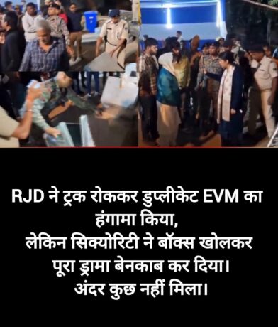 हार की आहट लगते ही RJD ने वही पुरानी स्क्रिप्ट दोहराई—EVM पर शक, ट्रक रोककर हंगामा, और सोशल मीडिया पर माहौल गर्म करने की कोशिश।
