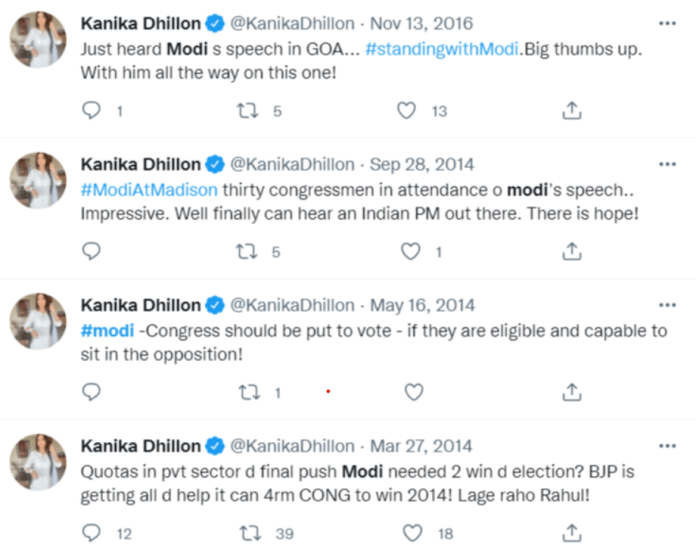 बता दें कि कनिका ढिल्लों का मोदी विरोधी व्यवहार हमेशा से नहीं रहा। 2014 में उनके द्वारा किए गए ट्वीट देखें तो पता चलता है कि 2014 लोकसभा चुनावों के दौरान और उससे पहले कनिका ढिल्लों मोदी समर्थक थीं। लेकिन अचानक उन्होंने ट्विटर पर भारत को नेगेटिव शेड में दिखाने के लिए हिंदुत्व को गाली देनी शुरू कर दी।