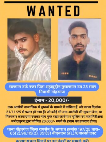 BREAKING NEWS:बलात्कारी मोहम्मद सलमान खान अभी भी फरार,इनाम हुआ 20000₹