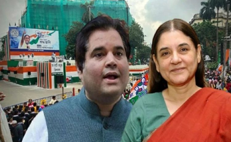 पश्चिम बंगाल की राजधानी कोलकाता में तृणमूल कांग्रेस (TMC) की बड़ी मीटिंग हो रही है. तृणमूल कांग्रेस सुप्रीमो और पश्चिम बंगाल की मुख्यमंत्री ममता बनर्जी (Mamata Banerjee) कुछ देर के बाद तृणमूल कांग्रेस की शहीद सभा को संबोधित करने वाली हैं. इस बीच, पूर्व प्रधानमंत्री इंदिरा गांधी इंदिरा गांधी के पोते और बीजेपी सांसद वरुण गांधी और उनकी पुत्रवधू मेनका गांधी (Varun Gandhi And Maneka Gandhi) कोलकाता पहुंचे हैं. वरुण गांधी और मेनका गांधी के कोलकाता पहुंचने के बाद कोलकाता की मीडिया में अटकलें शुरू हो गई हैं, हालांकि अभी इसकी पुष्टि नहीं हुई हैं कि मेनका गांधी और वरुण गांधी टीएमसी में शामिल हो रहे हैं, लेकिन इसे लेकर राजनीतिक हलकों में चर्चा शुरू हो गई है. टीवी 9 बांग्ला के अनुसार मेनका और वरुण गांधी के टीएमसी में शामिल होने की अटकलें हैं.